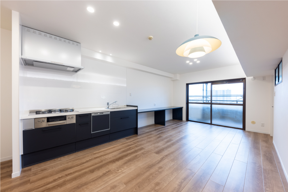 天井は一部、コンクリートを見せてデザイン性をたかめ、施工者と、設計士の入居後の生活まで考慮したデザイン性の高いリノベーションが出来ました。